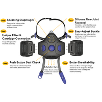- Push button seal check helps bolster confidence that the respirator is properly sealed to the face.